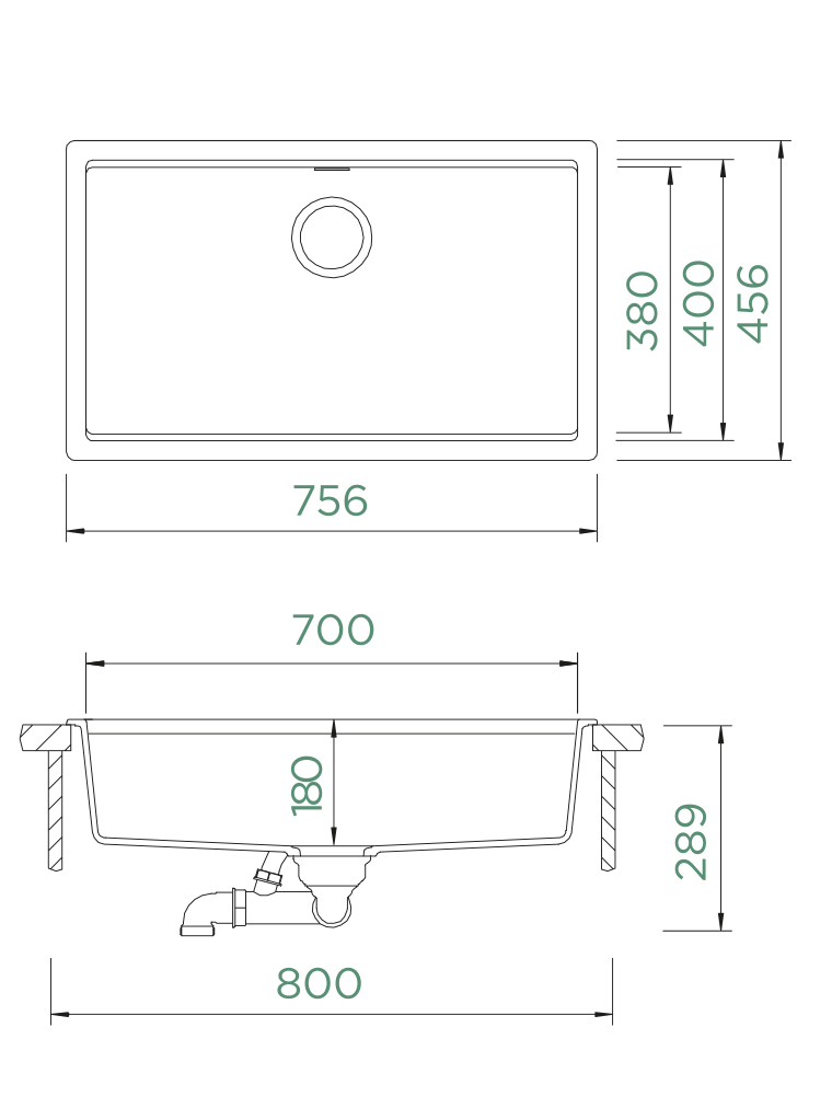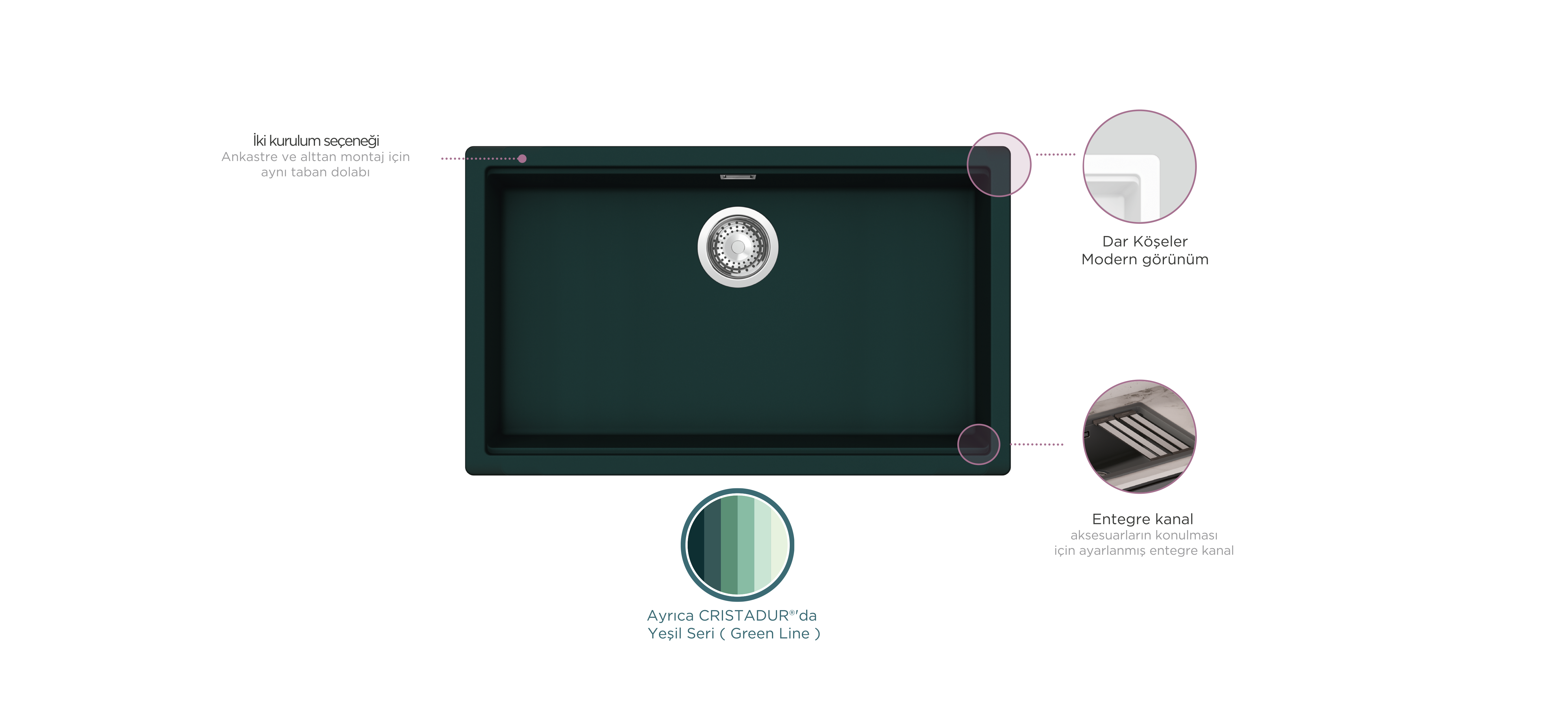 Kesim ölçüsü üst montaj: 742 x 442 mm R10