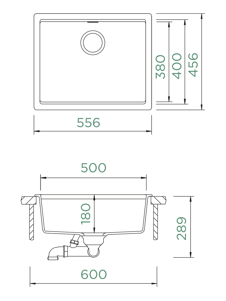 Kesim ölçüsü üst montaj: 500 x 400 mm R9