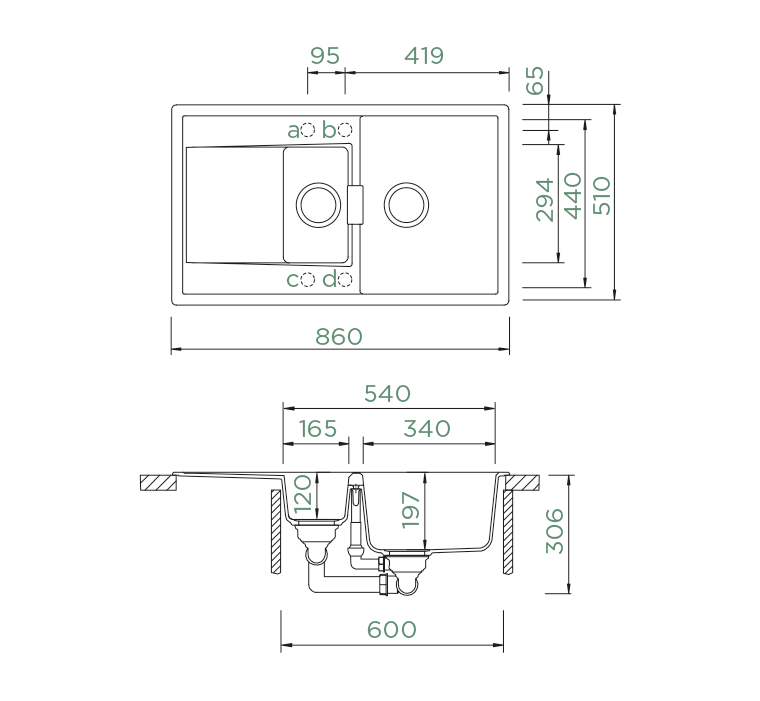 Evyenin iç ölçüsü: 340 x 440 x 197 mm